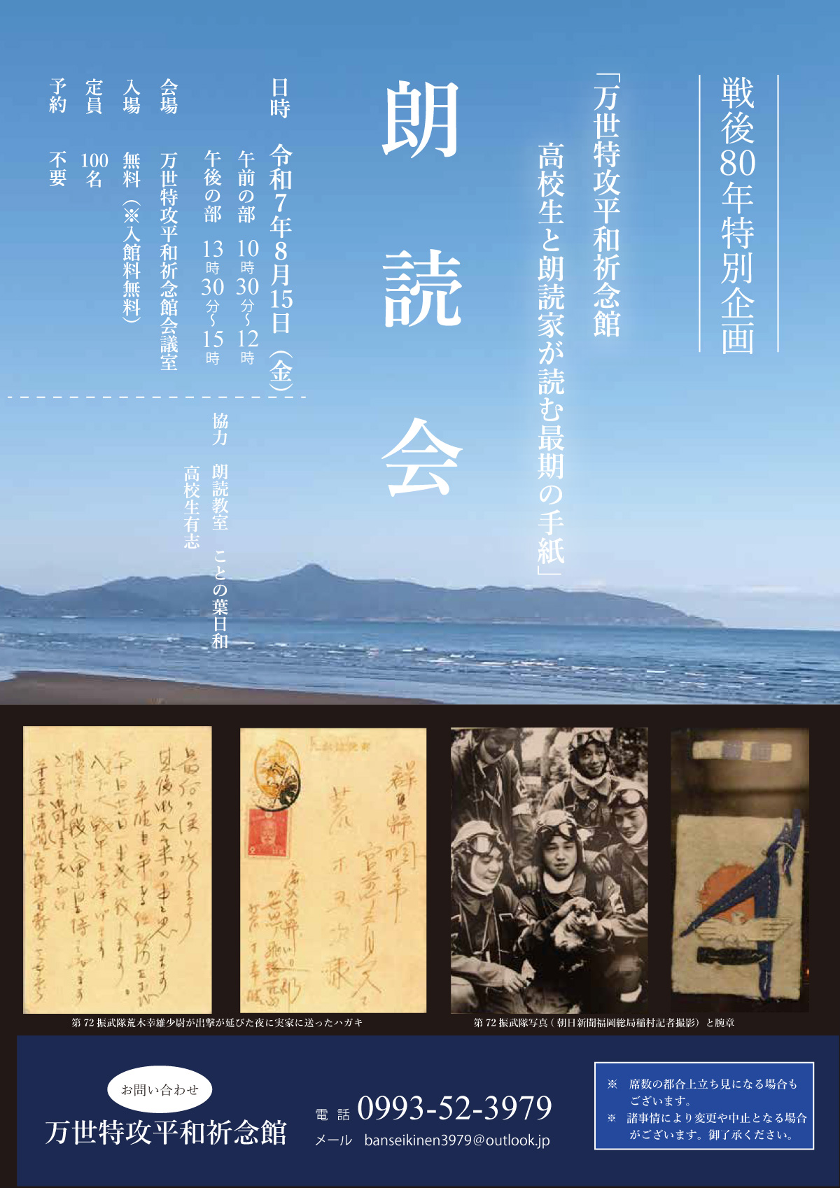 朗読会「戦後80年特別企画『万世特攻平和祈念館 高校生と朗読家が読む最期の手紙』」